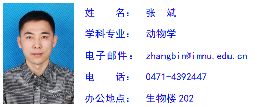 理学博士,教授,博士生导师。现任永利集团304副院长,内蒙古自治区动物学会副理事长,入选内蒙古自治区“草原英才”。先后获评内蒙古自治区“青年创新人才”第一层次、内蒙古高等学校“科技领军人才”。担任《Zoological Systematics》编委,以及《四川动物》等期刊青年编委。