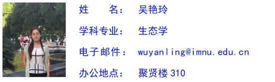 吴艳玲,女,汉族,中共党员,博士,副教授,硕士研究生导师。永利集团304生态学系系主任。主要从事草地生态学、土壤动物生态学领域的研究工作,主持国家自然科学基金项目1项,省部级、校级项目5项,参与国家级项目多项,发表国内核心期刊论文10余篇,出版专著1部。曾获得“优秀党务工作者”、“第十一届青年教师技能大赛”一等奖和“优秀班主任”等称号。承担普通生态学、环境学概论等相关课程的教学和专业实习指导工作。
