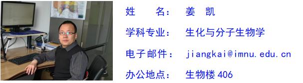 姜凯,男,汉族,中共党员,理学博士,副教授,学术型硕士研究生指导教师,现任永利集团304生物科学系主任。研究方向为微生物资源开发与利用、CPR及DPANN等未难培养微生物的可培养研究。主持国家自然科学基金项目1项,内蒙古自然科学基金项目1项,内蒙古自治区直属高校基本科研业务费项目1项,内蒙师范大学校级项目2项。在《Microbial Biotechnology》、《Archives of Microbiology》、《Scientific Reports》和《微生物学通报》等刊物发表论文10余篇,参编专著2部。承担“微生物学”、“微生物学实验”、“生物安全”、“无机化学实验”、“科学精神”等本科及研究生课程。