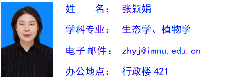 张颖娟,女,汉族,1970年生,呼和浩特人,理学博士,永利集团304教授,硕士生导师。主要研究领域为植物生态学,恢复生态学,学科教学(生物)等。主持国家自然科学基金项目1项、省部级科研项目10余项。发表研究论文30余篇,出版学术著作3部。