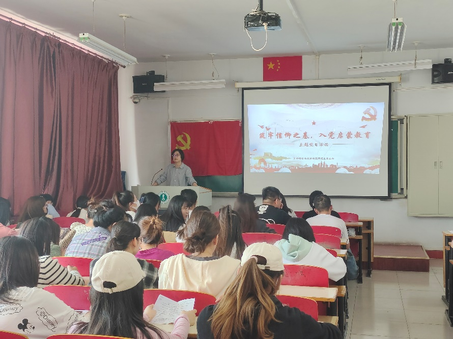 首先研究生党支部书记穆文静老师向同学们介绍了研究生党支部的基本情况。穆老师从加强理论学习,树立正确的世界观、人生观、价值观,通过实践不断端正党动机三个方面分析了如何端正入党动机。要求同学们首先要抓好专业课的学习,创建优良学风,打造优异成绩。其次是抓工作态度和能力,同学们要在各自的研究室内发挥骨干作用,热心学院组织的各项活动,积极投身社会实践,勇于为同学、为老师、为他人服务。希望同学们“未进党的门,先做党的人”,严格按照一名党员的标准要求自己,争取早日加入中国共产党。