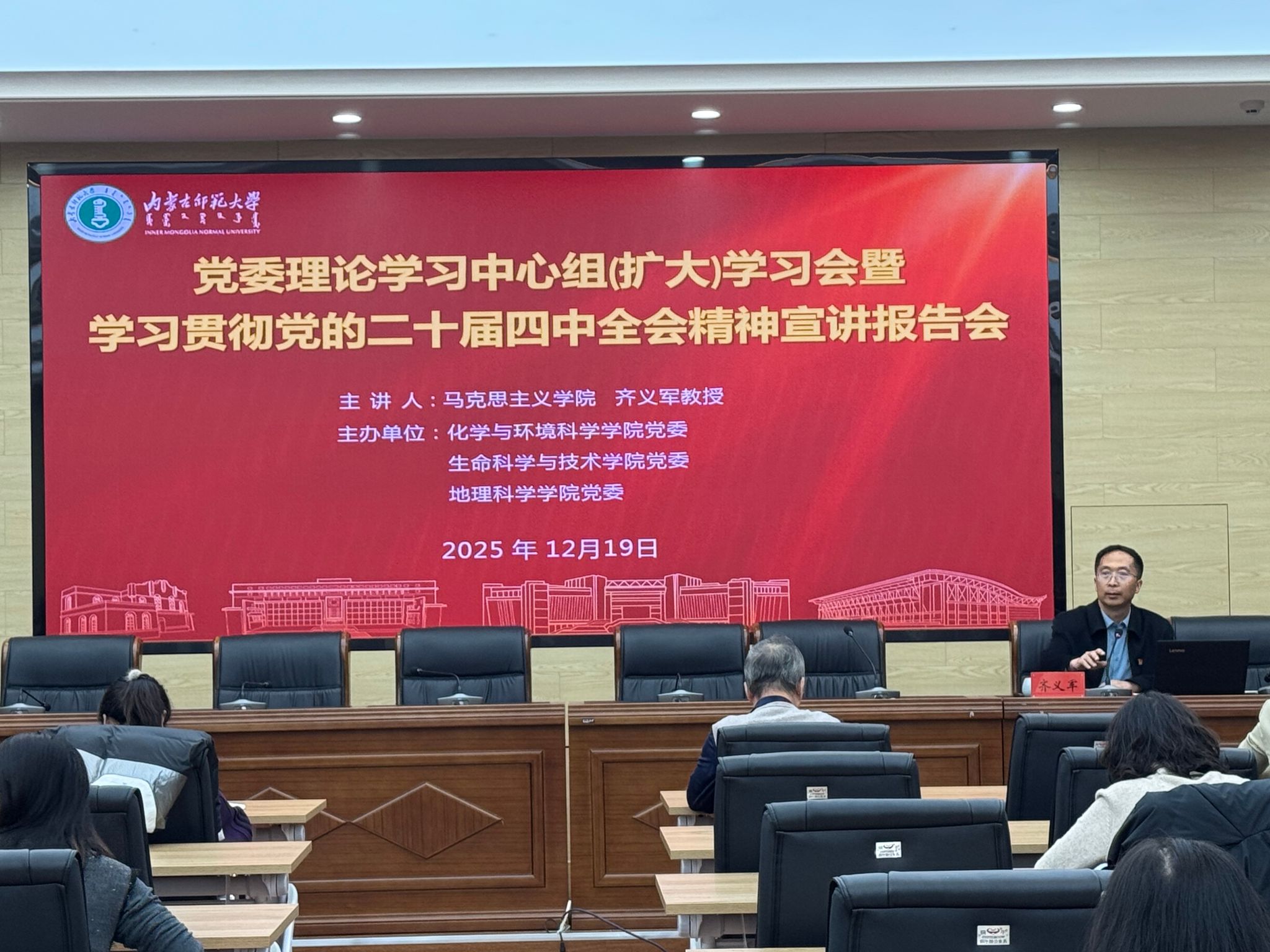 为深入学习贯彻党的二十届四中全会精神,切实把思想和行动统一到党中央决策部署上来。12月19日下午,由校党委宣传部主办,永利集团304、地理科学学院、化学与环境科学学院联合承办了学习贯彻党的二十届四中全会精神专题报告会。马克思主义学院院长齐义军教授应邀作专题宣讲。