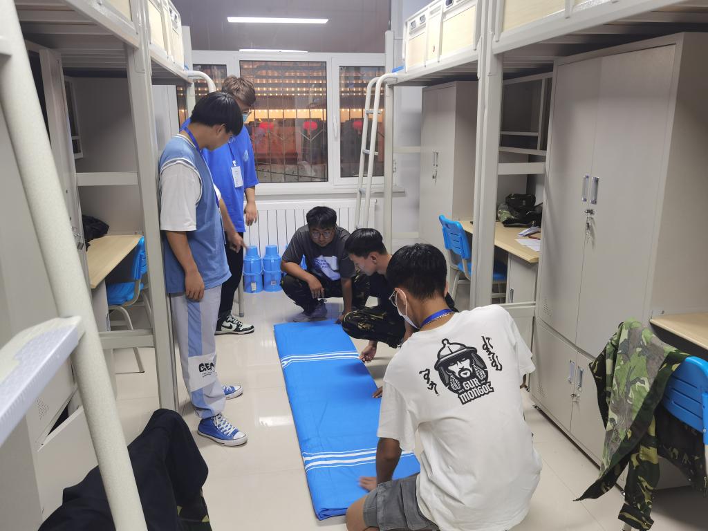9月8日下午,院学生会各部门积极配合,在永利集团3042022级本科新生军训期间开展了新生内务标准样板间展示活动,旨在加强学生内务水平、规范军事化要求,帮助新生养成良好生活习惯,提升内务水平。活动期间,学生会部门负责人指导各个生班班级负责人参照军队的标准,对宿舍门窗地面整洁、物品摆放规范、被褥叠放平整、整体环境卫生四个部分提出了严格要求并指出了在细节整理方面的注意事项。本次活动在培养新生动手能力,强化个人素养的同时营造良好的军队氛围,为新生们尽早适应军事化管理奠定了基础。活动过程中,学生会指导人员抓紧时间,强调细节,在进行现场示范的同时指导新生进行实践操作。