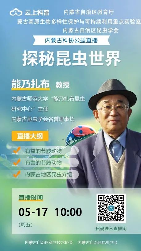本期科普直播活动,邀请我区生物学领域专家能乃扎布教授带大家“探秘昆虫世界”。