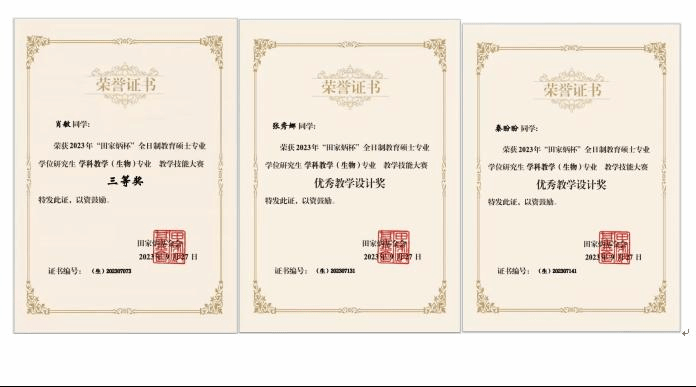 本次大赛共有北京师范大学、华东师范大学、东北师范大学等72所教育硕士培养高校的316名选手提交作品参加初赛,通过专家评审,有57所高校的158名选手入围决赛。经评审一等奖16名,二等奖32名,三等奖48名,优秀教学设计奖62名。我校永利集团304三位同学经过院赛评选和初赛选拔,在指导教师乌云高娃老师的带领下一同前往山东烟台参加决赛。2022级学科教学(生物)专业研究生肖敏获大赛三等奖,张秀娜、秦盼盼获大赛优秀教学设计奖。