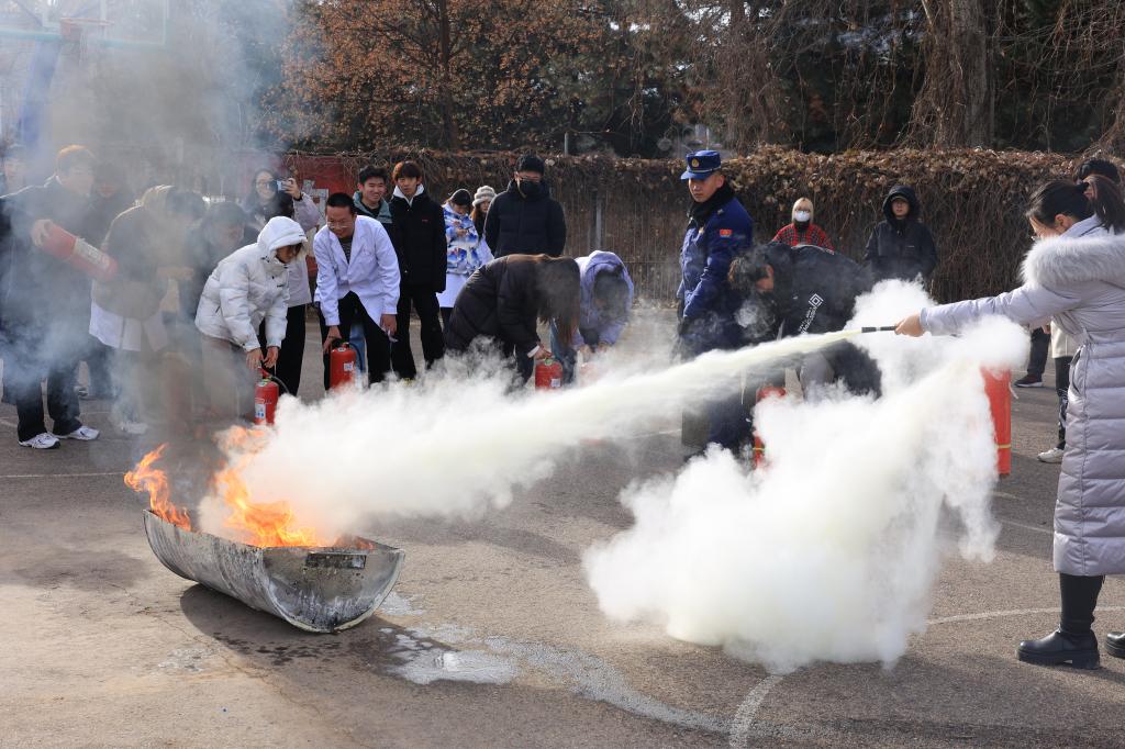 演练活动安排了实验室突发火灾疏散逃生、应急灭火两个环节。随着实验室警报声响起,滚滚浓烟冒出,师生们迅速进入紧急状态,按照预先制定的疏散路线,有条不紊地进行撤离。在疏散过程中,老师们沉着冷静地指挥,同学们迅速用湿毛巾捂住口鼻,弯腰低姿前行,整个疏散过程紧张有序,仅用了短短几分钟时间,所有师生都成功撤离到了安全区域。在应急灭火环节,在消防员的指导下,参与师生了解掌握了灭火器的种类、适用范围及操作步骤,还进行了灭火器灭火实操训练,掌握了初期火灾扑救要领。
