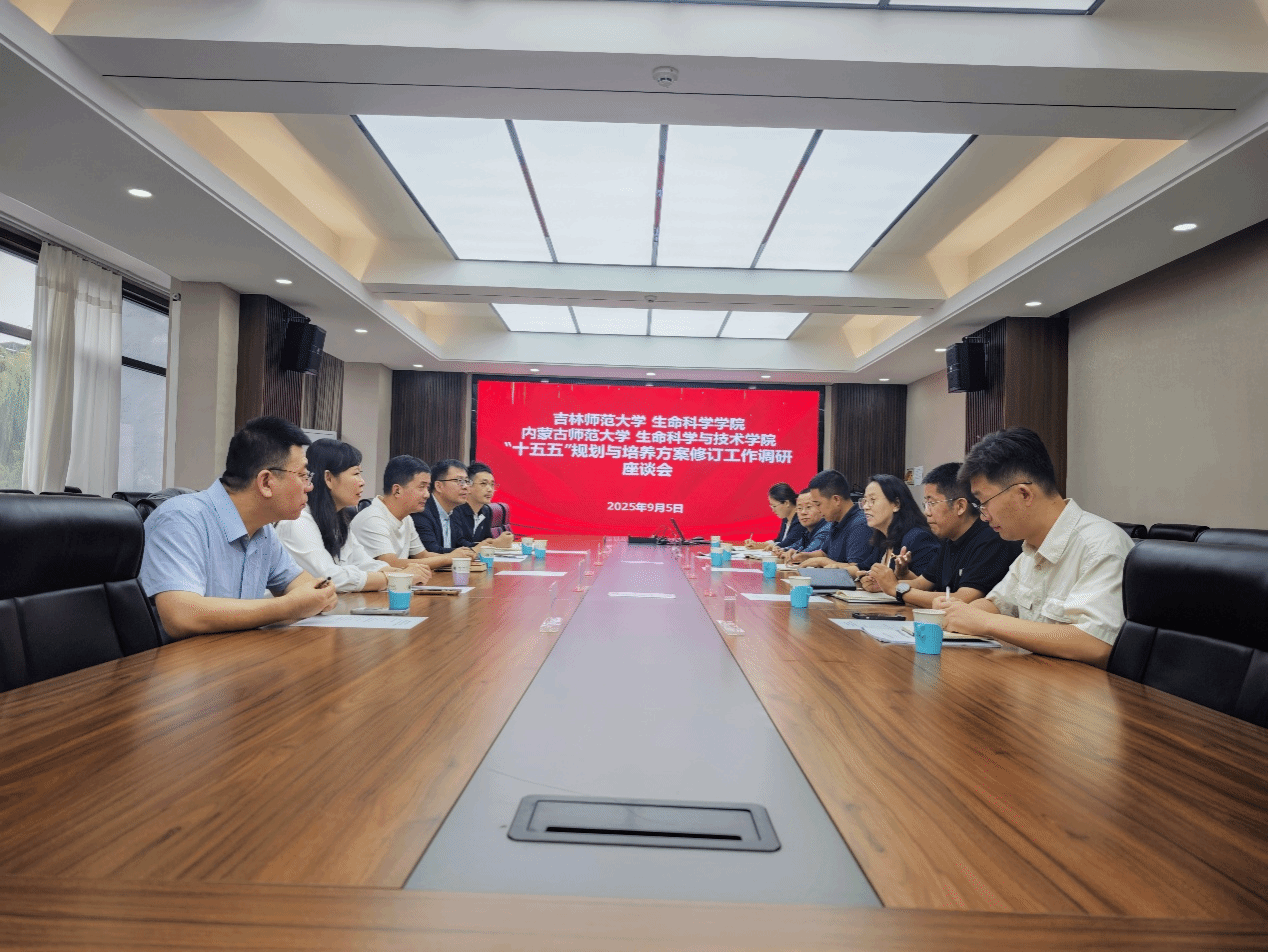 2025年9月5日上午,吉林师范大学生命科学学院院长刘剑锋、党委副书记齐长利、副院长赵勇斌、金太成以及生物学思政育人教研室主任董志遥一行来学院调研交流。学院党委副书记、院长红雨,党委副书记、副院长高峰,副院长张斌,生物科学系主任姜凯,生物技术系副主任杜超,生态学系副主任郭金停参加了座谈会。会议由红雨院长主持。