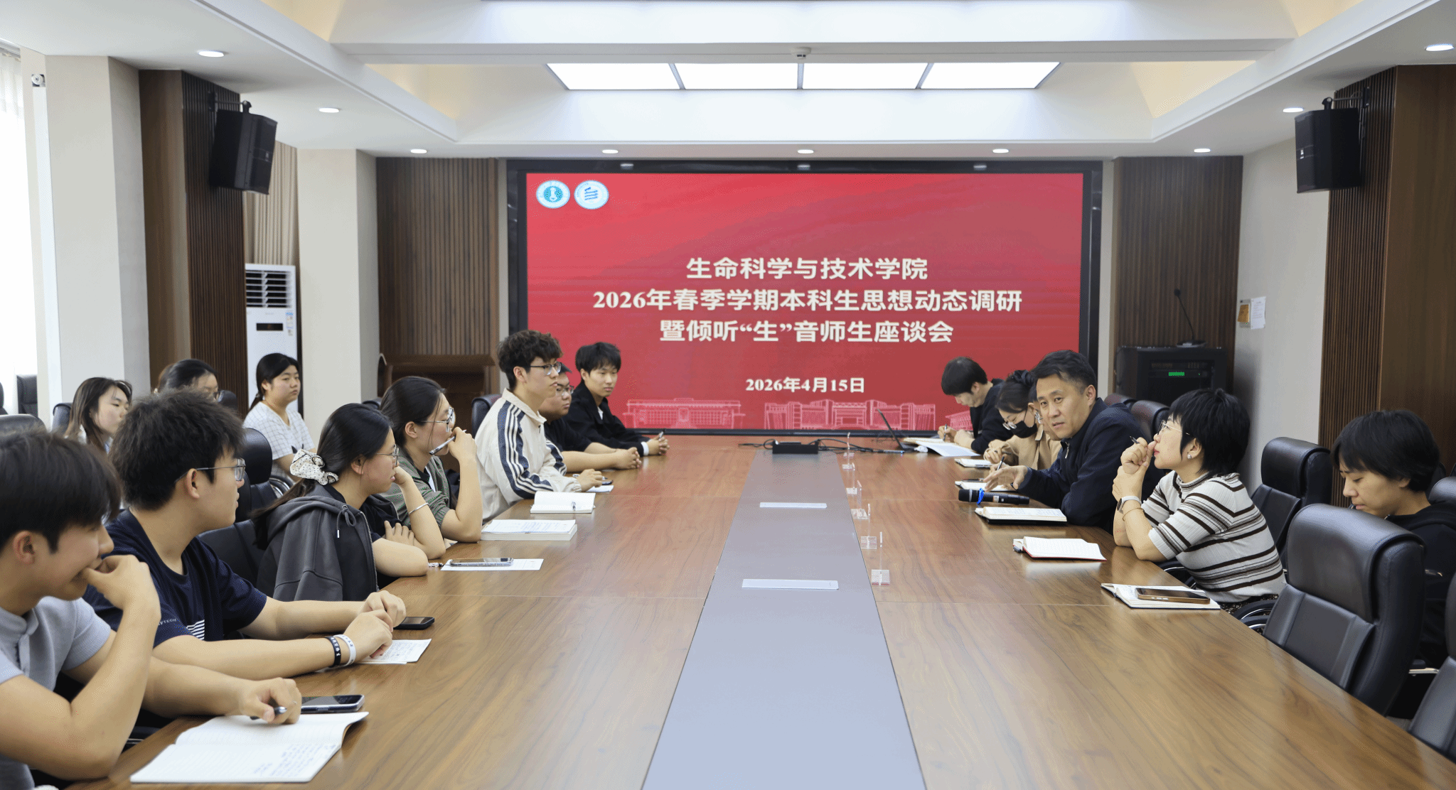 为扎实推进树立和践行正确政绩观学习教育走深走实,进一步了解本科学生思想动态、广泛征求意见建议、精准回应成长诉求,4月15日中午,学院在生物楼三楼会议室召开2026年春季学期本科生思想动态调研暨倾听“生”音师生座谈会。学院党委书记苏小波、党委副书记、副院长高峰、本科生教务办、辅导员和各年级学生代表参加会议,围绕学习生活与发展需求开展面对面交流。座谈会由党委副书记、副院长高峰主持。