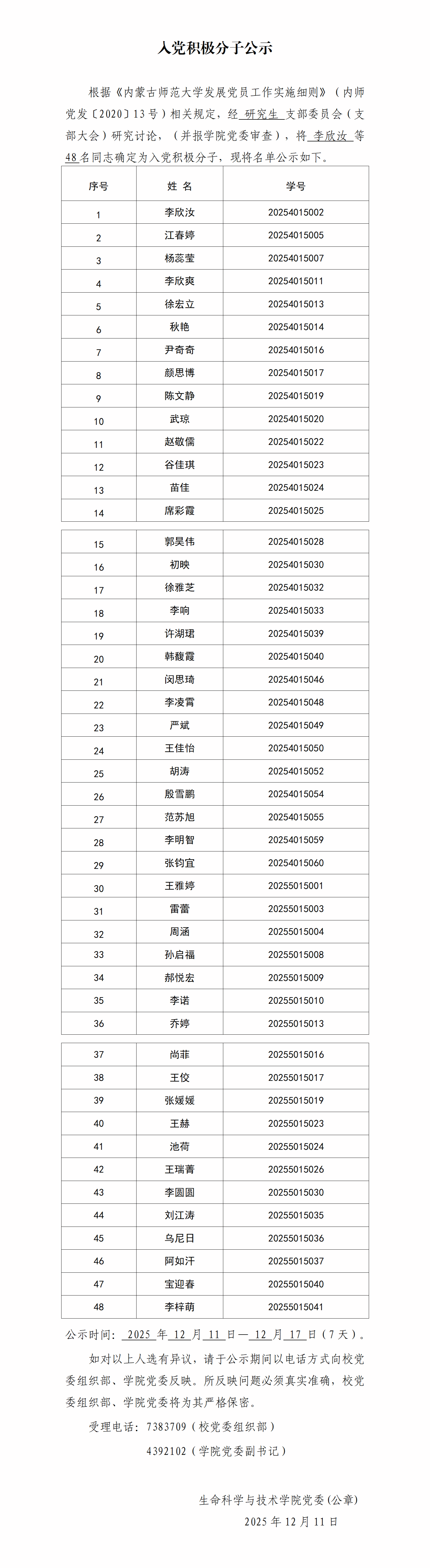 入党积极分子公示