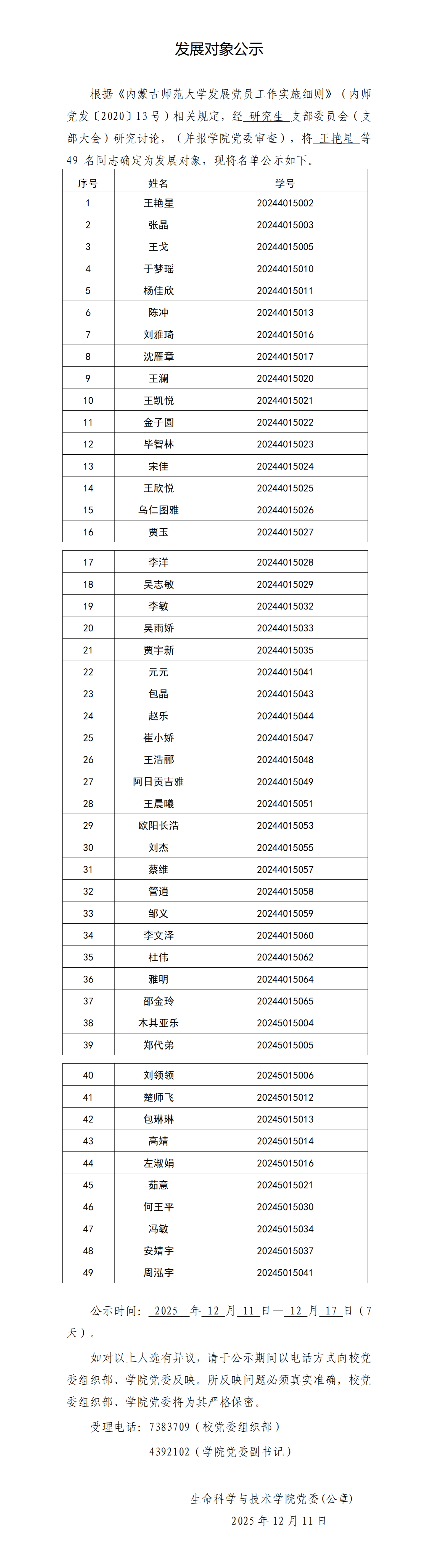 发展对象公示