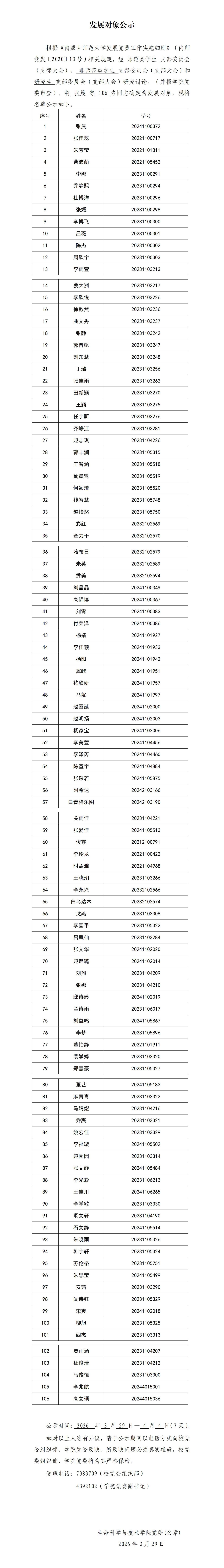 发展对象公示